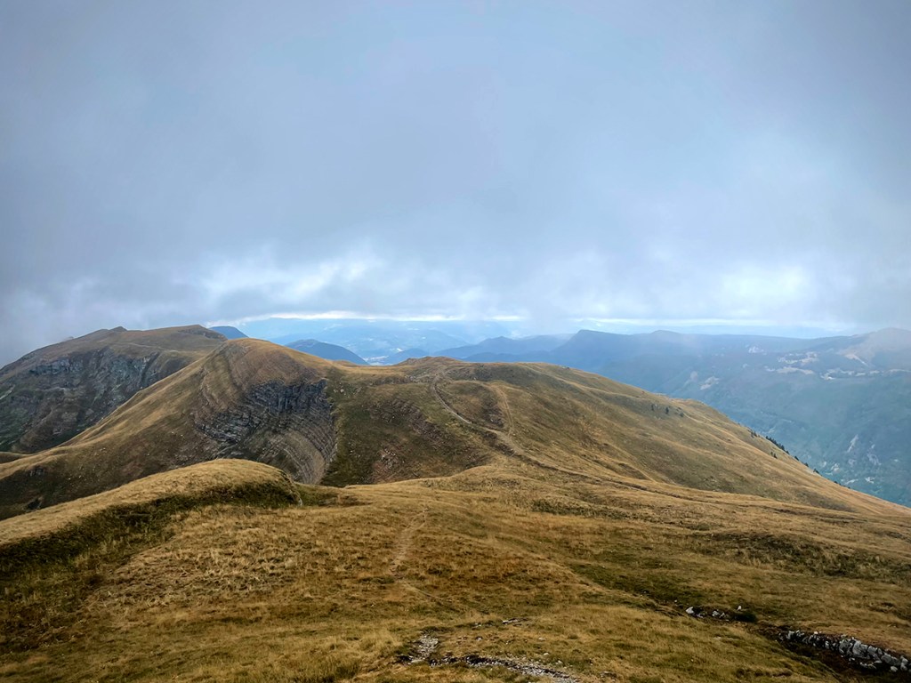De violents orages étaient prévus en fin d’après-midi. L’étape était longue, et pour ne pas me retrouver bloquée là-haut sous la tempête – surtout que les chemins de crête sont particulièrement exposés -, j’ai marché plus vite que d’habitude et je ne me suis presque pas arrêtée. Sept heures de marche sans vraie pause.